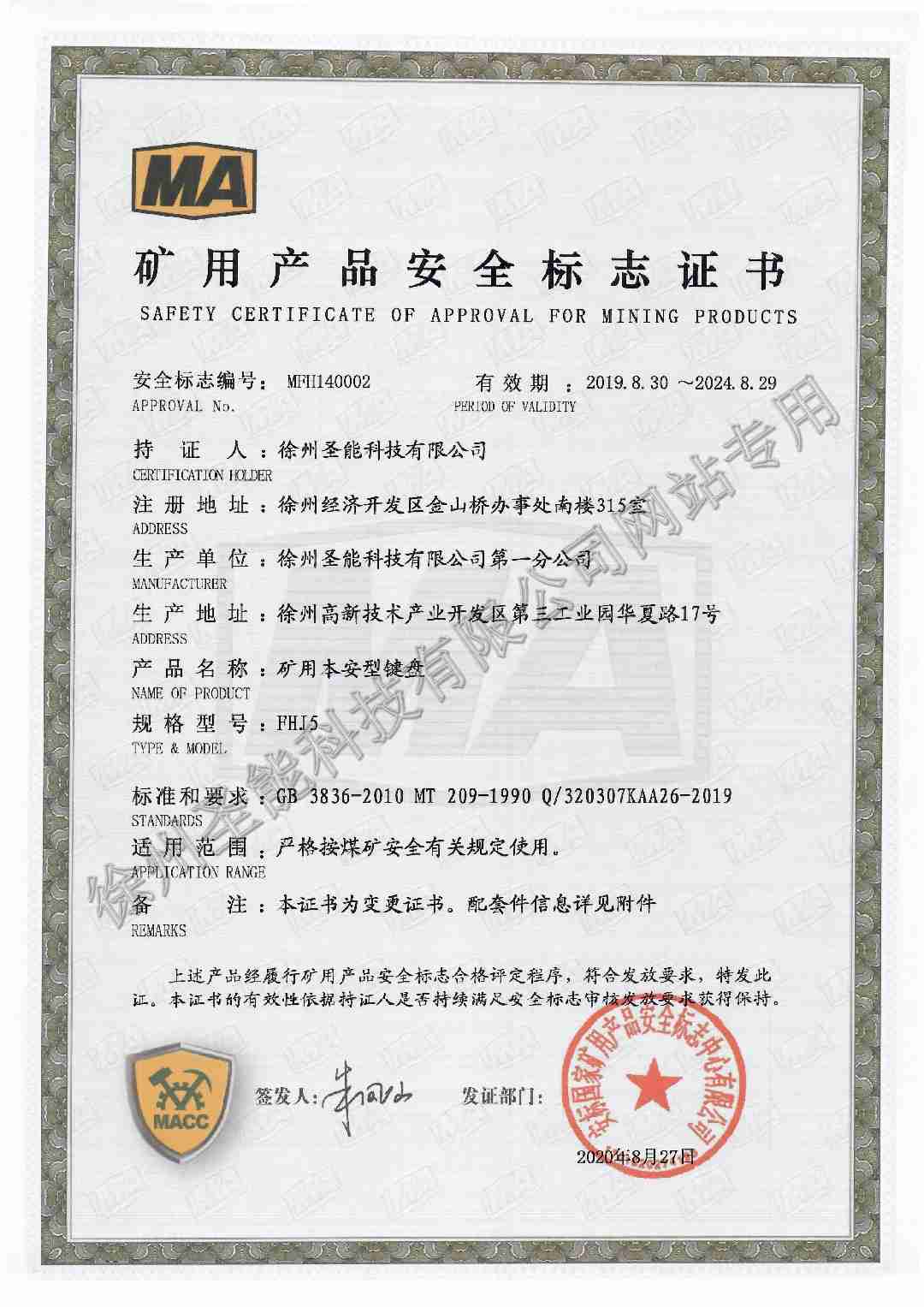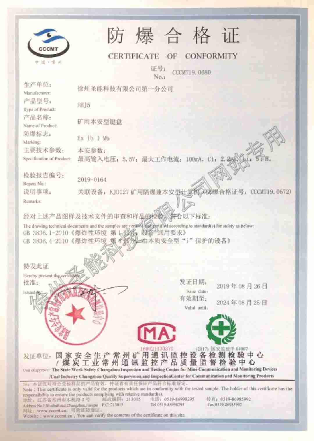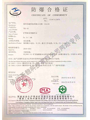 • 防爆標(biāo)志:Exd[ib] I Mb 煤安標(biāo)號:MFA140003 防爆證號:CCCMT14.0001 執(zhí)行標(biāo)準(zhǔn):Q/320307KAA25-2013