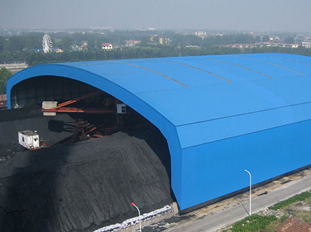 干煤棚結構的主要作用就是在煤場上加蓋,以防止煤炭下雨時受淋和刮風時污染環(huán)境,是一項節(jié)能和環(huán)保工程。干煤棚的建筑功能主要是大型的儲存庫房,所以它必須具有一定的儲存和作業(yè)空間。