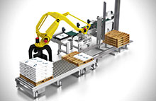 碼垛機器人將流水線上或是其他的方包裝好的產(chǎn)品用抓取器抓取,然后移動抓取器,將產(chǎn)品按照一定的方式在要求的位置碼好。抓取時,因為所用的抓取器不同,抓取原理不同。碼垛方式也有多種,有正反交錯式、縱橫交錯式、旋轉(zhuǎn)交錯式等。