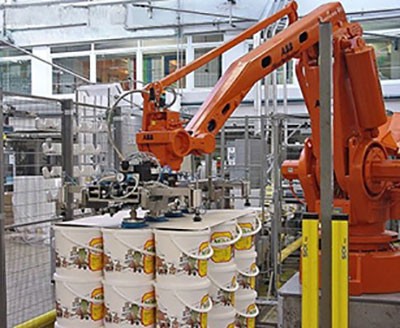 桶裝碼垛機(jī)器人專門用來對(duì)桶裝產(chǎn)品進(jìn)行碼垛、卸垛工作。
